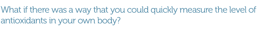 By measuring the stable level of carotenoid antioxidants in your skin and generating your Skin Carotenoid Score, the Scanner provides a more accurate and reliable biomarker of your overall antioxidant health status than other methods of measuring antioxidants. Getting your Skin Carotenoid Score makes you aware of the antioxidant levels in your body-and gives you the push you need to improve your overall antioxidant health.